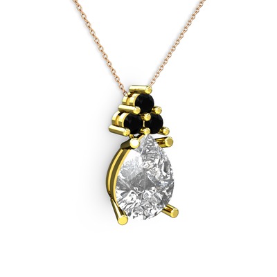 Beyaz zirkon ve siyah zirkon 14 ayar altın kolye (40 cm rose altın rolo zincir)