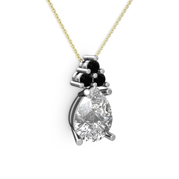 Beyaz zirkon ve siyah zirkon 8 ayar beyaz altın kolye (40 cm altın rolo zincir)
