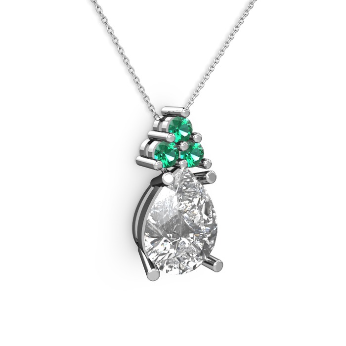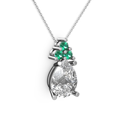 Beyaz zirkon ve yeşil kuvars 18 ayar beyaz altın kolye (40 cm beyaz altın rolo zincir)