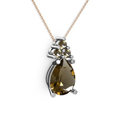 Dumanlı kuvars 14 ayar beyaz altın kolye (40 cm rose altın rolo zincir)