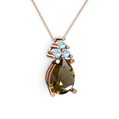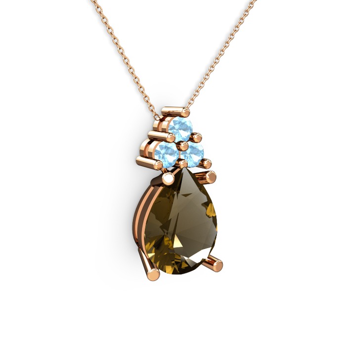 Dumanlı kuvars ve akuamarin 18 ayar rose altın kolye (40 cm rose altın rolo zincir)