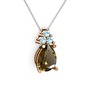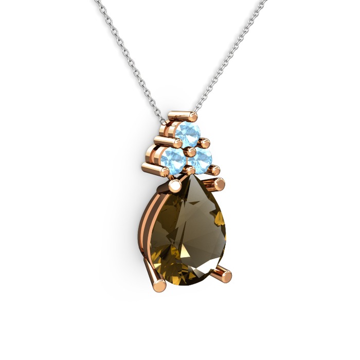 Dumanlı kuvars ve akuamarin 8 ayar rose altın kolye (40 cm beyaz altın rolo zincir)