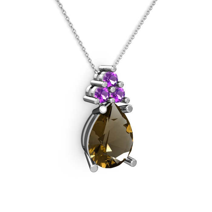 Dumanlı kuvars ve ametist 18 ayar beyaz altın kolye (40 cm beyaz altın rolo zincir)