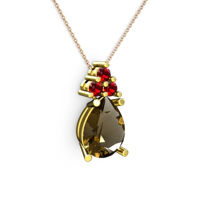 Dumanlı kuvars ve garnet 14 ayar altın kolye (40 cm gümüş rolo zincir)