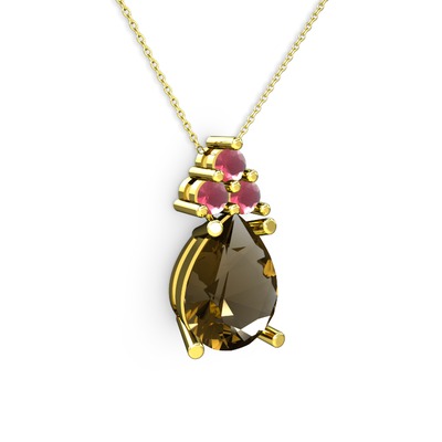 Dumanlı kuvars ve kök yakut 925 ayar altın kaplama gümüş kolye (40 cm altın rolo zincir)