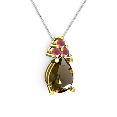 Dumanlı kuvars ve kök yakut 925 ayar altın kaplama gümüş kolye (40 cm beyaz altın rolo zincir)