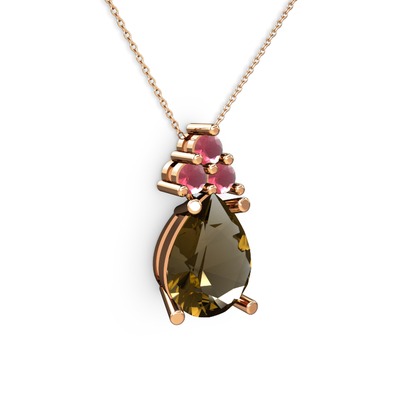 Dumanlı kuvars ve kök yakut 925 ayar rose altın kaplama gümüş kolye (40 cm rose altın rolo zincir)