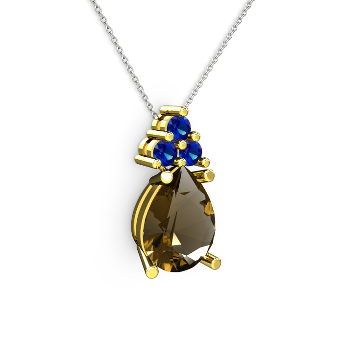 Dumanlı kuvars ve lab safir 14 ayar altın kolye (40 cm gümüş rolo zincir)