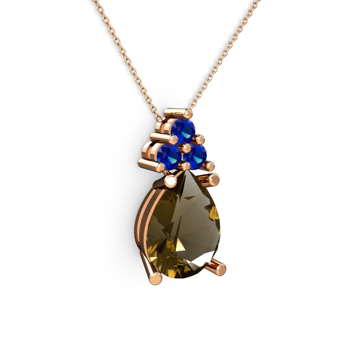 Dumanlı kuvars ve lab safir 925 ayar rose altın kaplama gümüş kolye (40 cm gümüş rolo zincir)