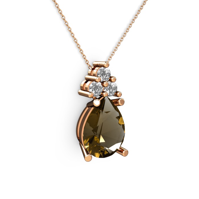 Dumanlı kuvars ve pırlanta 18 ayar rose altın kolye (0.72 karat, 40 cm gümüş rolo zincir)
