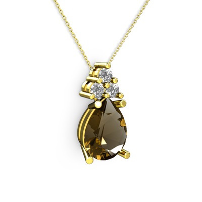 Dumanlı kuvars ve pırlanta 925 ayar altın kaplama gümüş kolye (0.72 karat, 40 cm gümüş rolo zincir)