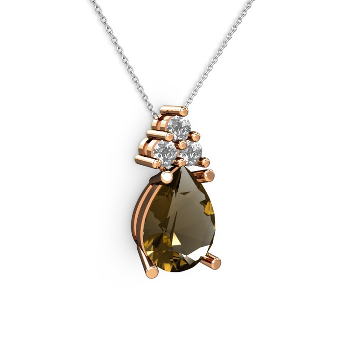 Dumanlı kuvars ve swarovski 14 ayar rose altın kolye (40 cm beyaz altın rolo zincir)
