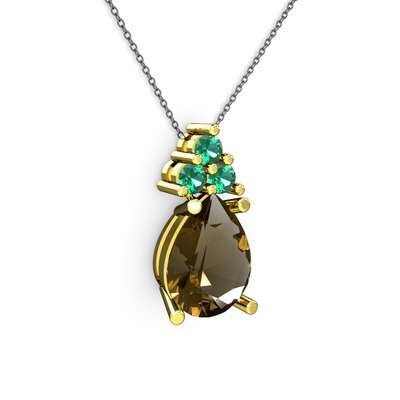 Dumanlı kuvars ve yeşil kuvars 8 ayar altın kolye (40 cm gümüş rolo zincir)
