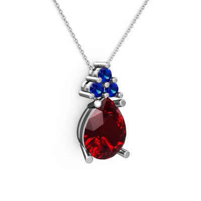 Garnet ve lab safir 925 ayar gümüş kolye (40 cm gümüş rolo zincir)
