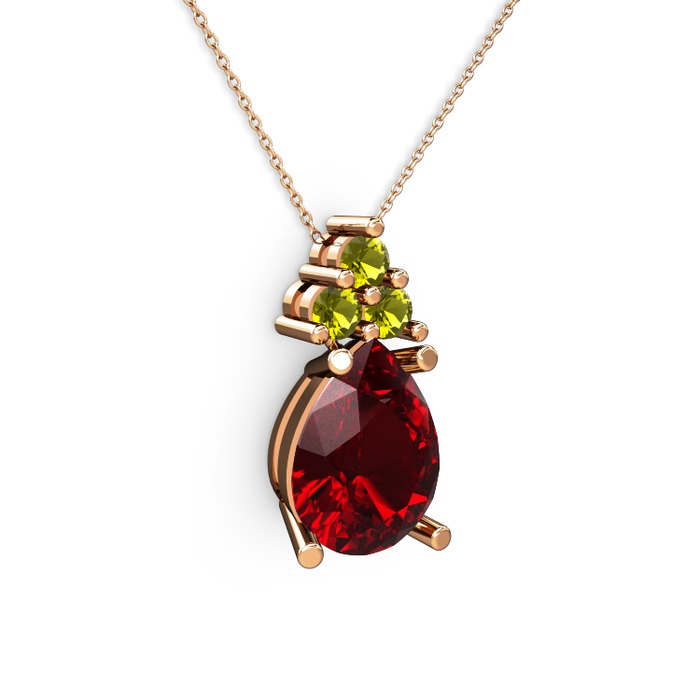 Garnet ve peridot 14 ayar rose altın kolye (40 cm gümüş rolo zincir)