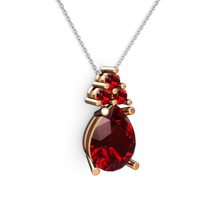 Garnet 925 ayar rose altın kaplama gümüş kolye (40 cm beyaz altın rolo zincir)