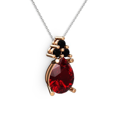 Garnet ve siyah zirkon 925 ayar rose altın kaplama gümüş kolye (40 cm beyaz altın rolo zincir)