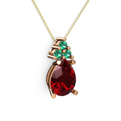 Garnet ve yeşil kuvars 14 ayar rose altın kolye (40 cm gümüş rolo zincir)