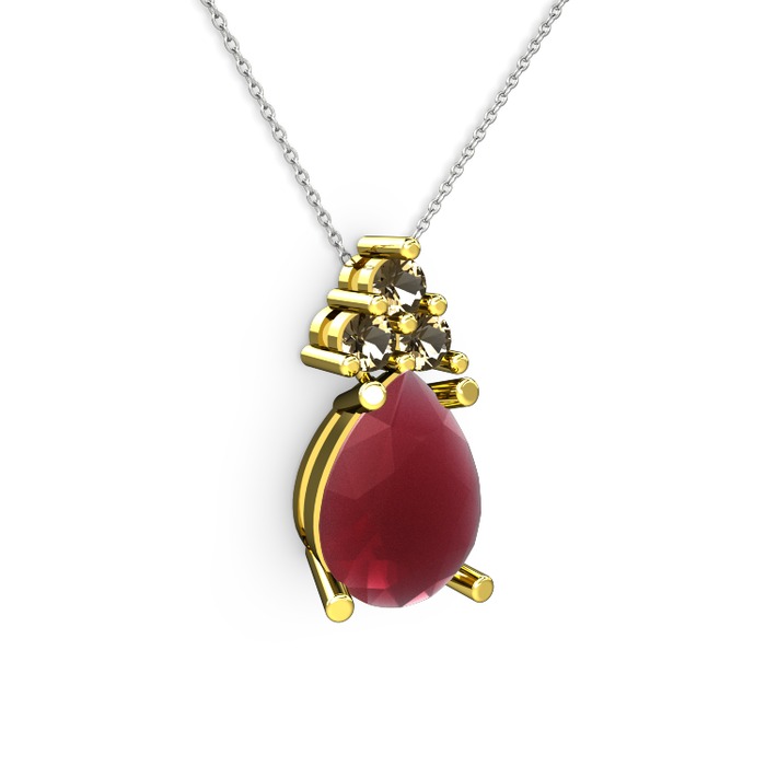 Kök yakut ve dumanlı kuvars 8 ayar altın kolye (40 cm beyaz altın rolo zincir)