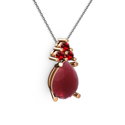 Kök yakut ve garnet 18 ayar rose altın kolye (40 cm gümüş rolo zincir)
