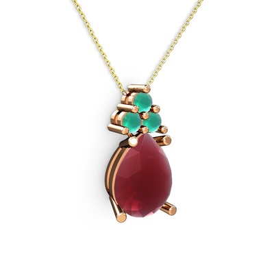 Kök yakut ve kök zümrüt 8 ayar rose altın kolye (40 cm altın rolo zincir)