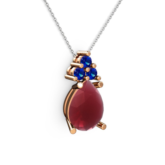 Kök yakut ve lab safir 8 ayar rose altın kolye (40 cm beyaz altın rolo zincir)