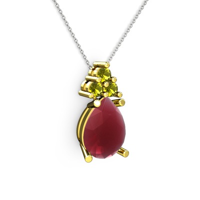 Kök yakut ve peridot 14 ayar altın kolye (40 cm beyaz altın rolo zincir)