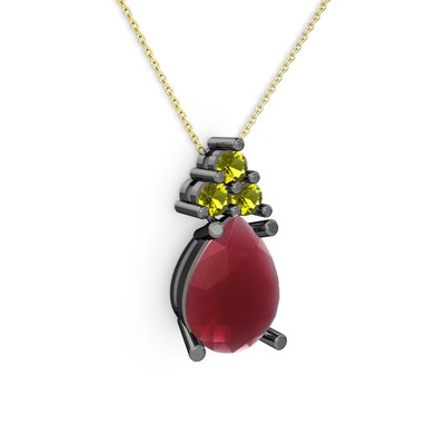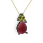 Kök yakut ve peridot 925 ayar siyah rodyum kaplama gümüş kolye (40 cm altın rolo zincir)