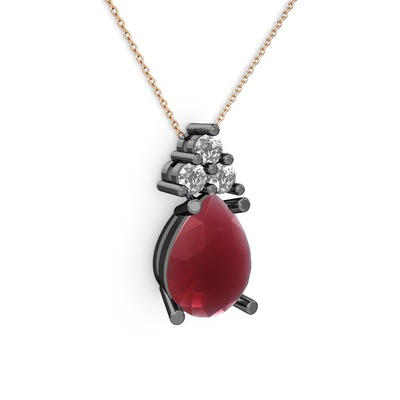 Kök yakut ve pırlanta 925 ayar siyah rodyum kaplama gümüş kolye (0.72 karat, 40 cm gümüş rolo zincir)