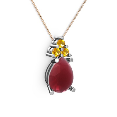 Kök yakut ve sitrin 14 ayar beyaz altın kolye (40 cm rose altın rolo zincir)
