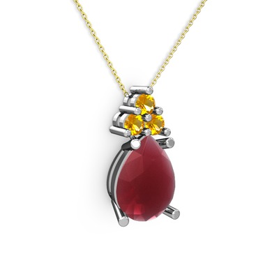 Kök yakut ve sitrin 18 ayar beyaz altın kolye (40 cm altın rolo zincir)