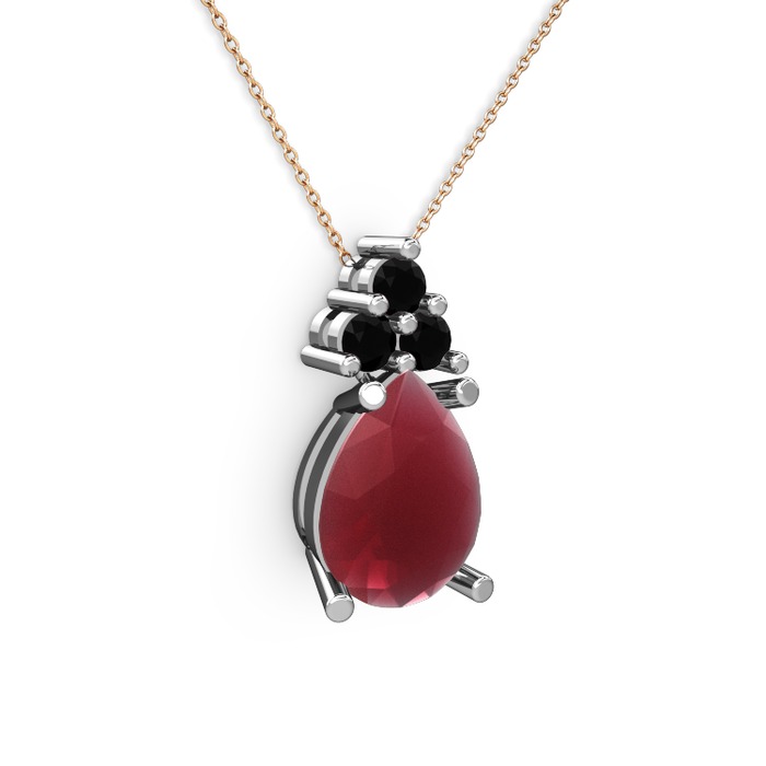 Kök yakut ve siyah zirkon 14 ayar beyaz altın kolye (40 cm rose altın rolo zincir)