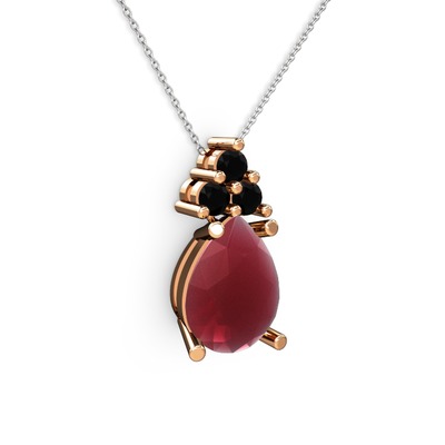Kök yakut ve siyah zirkon 8 ayar rose altın kolye (40 cm gümüş rolo zincir)
