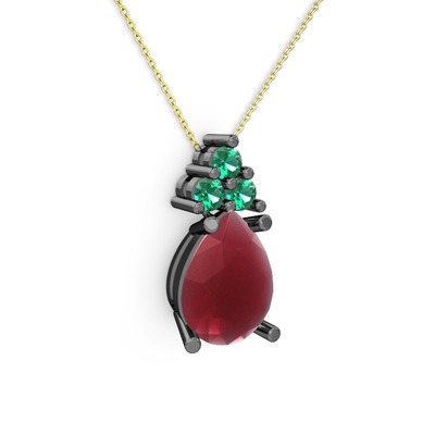 Kök yakut ve yeşil kuvars 925 ayar siyah rodyum kaplama gümüş kolye (40 cm altın rolo zincir)