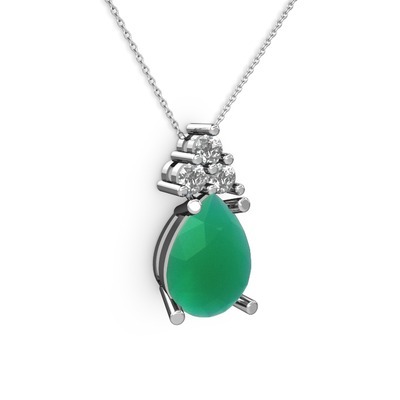 Kök zümrüt ve beyaz zirkon 8 ayar beyaz altın kolye (40 cm beyaz altın rolo zincir)