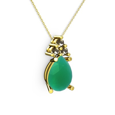 Kök zümrüt ve dumanlı kuvars 925 ayar altın kaplama gümüş kolye (40 cm altın rolo zincir)