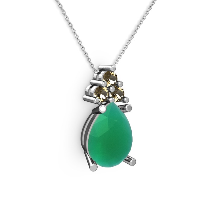 Kök zümrüt ve dumanlı kuvars 925 ayar gümüş kolye (40 cm beyaz altın rolo zincir)