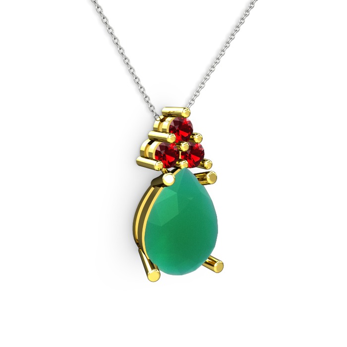 Kök zümrüt ve garnet 8 ayar altın kolye (40 cm beyaz altın rolo zincir)