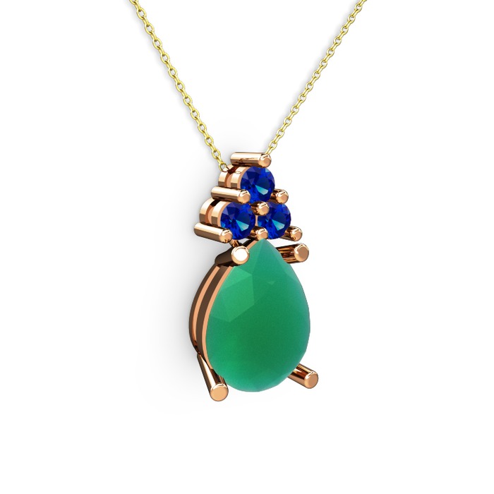 Kök zümrüt ve lab safir 8 ayar rose altın kolye (40 cm altın rolo zincir)