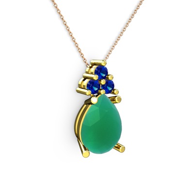 Kök zümrüt ve lab safir 925 ayar altın kaplama gümüş kolye (40 cm rose altın rolo zincir)