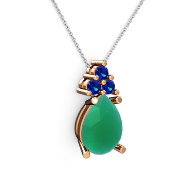 Kök zümrüt ve lab safir 925 ayar rose altın kaplama gümüş kolye (40 cm beyaz altın rolo zincir)