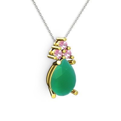 Kök zümrüt ve pembe kuvars 14 ayar altın kolye (40 cm beyaz altın rolo zincir)