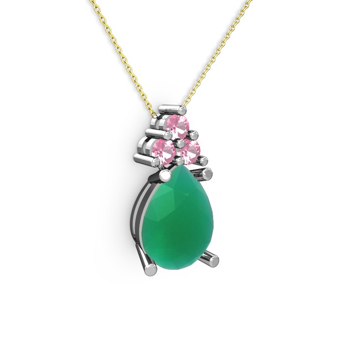 Kök zümrüt ve pembe kuvars 8 ayar beyaz altın kolye (40 cm altın rolo zincir)