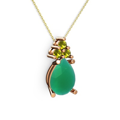 Kök zümrüt ve peridot 8 ayar rose altın kolye (40 cm altın rolo zincir)