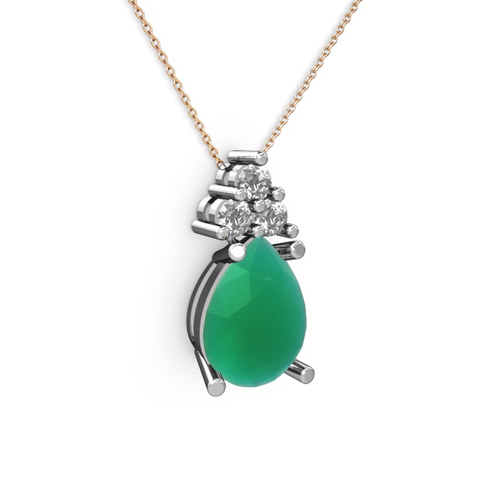 Kök zümrüt ve pırlanta 8 ayar beyaz altın kolye (0.72 karat, 40 cm rose altın rolo zincir)