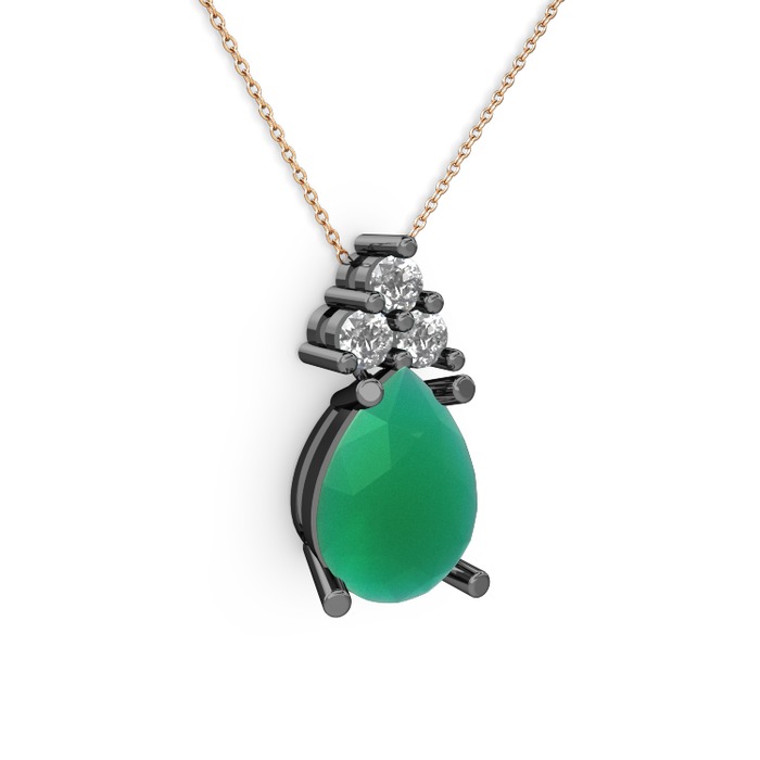 Kök zümrüt ve pırlanta 925 ayar siyah rodyum kaplama gümüş kolye (0.72 karat, 40 cm rose altın rolo zincir)