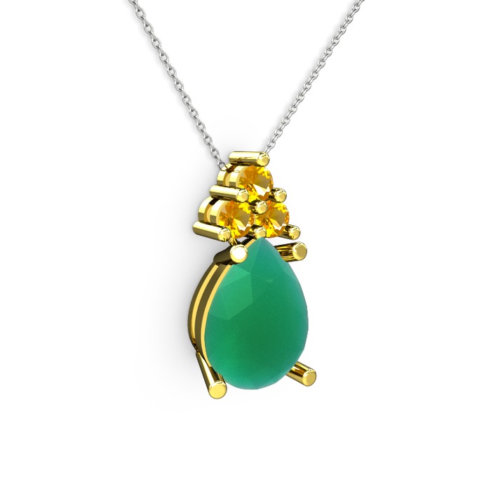 Kök zümrüt ve sitrin 14 ayar altın kolye (40 cm gümüş rolo zincir)