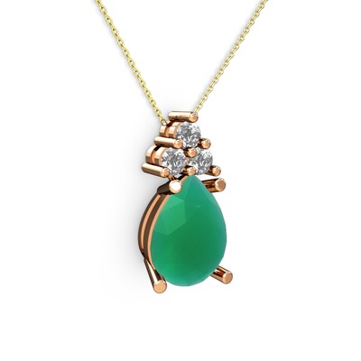 Kök zümrüt ve swarovski 18 ayar rose altın kolye (40 cm altın rolo zincir)