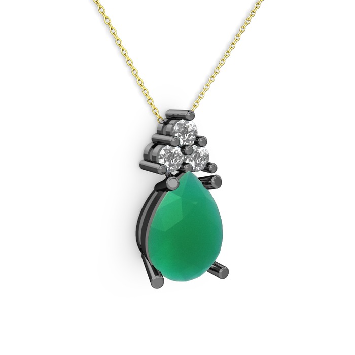 Kök zümrüt ve swarovski 925 ayar siyah rodyum kaplama gümüş kolye (40 cm altın rolo zincir)