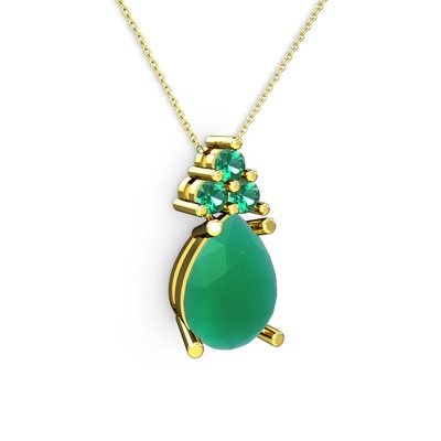 Kök zümrüt ve yeşil kuvars 18 ayar altın kolye (40 cm altın rolo zincir)